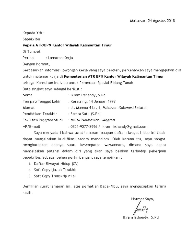 Contoh Surat Lamaran Kerja Di Badan Pertanahan Nasional - Kumpulan Surat Penting