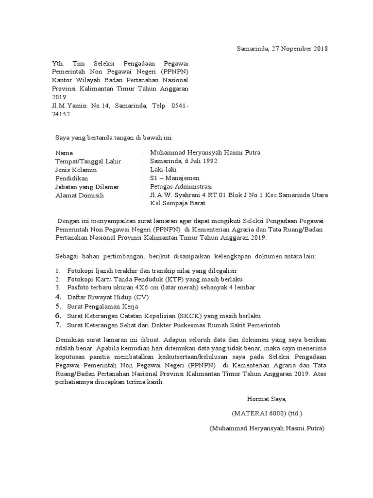 Contoh Surat Lamaran Cpns Badan Pertanahan Nasional