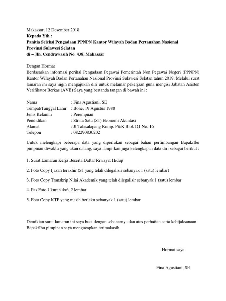 Contoh Surat Lamaran Kerja Bpn Non Pns - Contoh Seputar Surat
