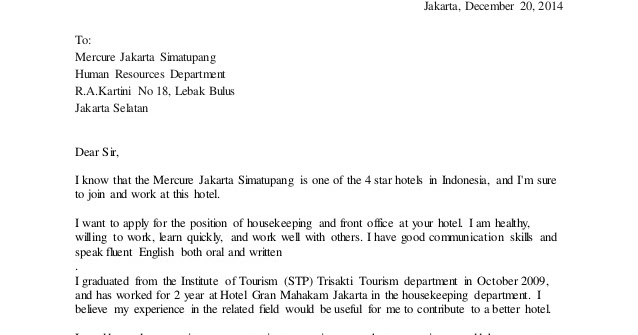 ben jobs: Contoh Surat Lamaran Kerja Bahasa Inggris Untuk Hotel