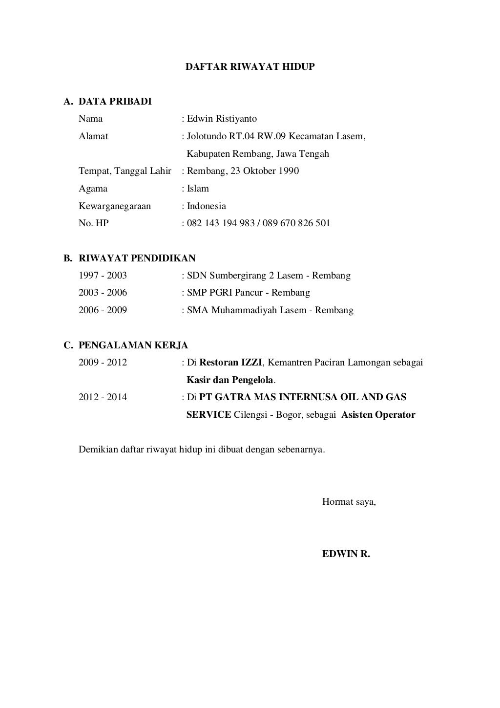 Contoh Surat Lamaran Kerja Alfamart Rembang - Contoh Surat Lamaran Kerja