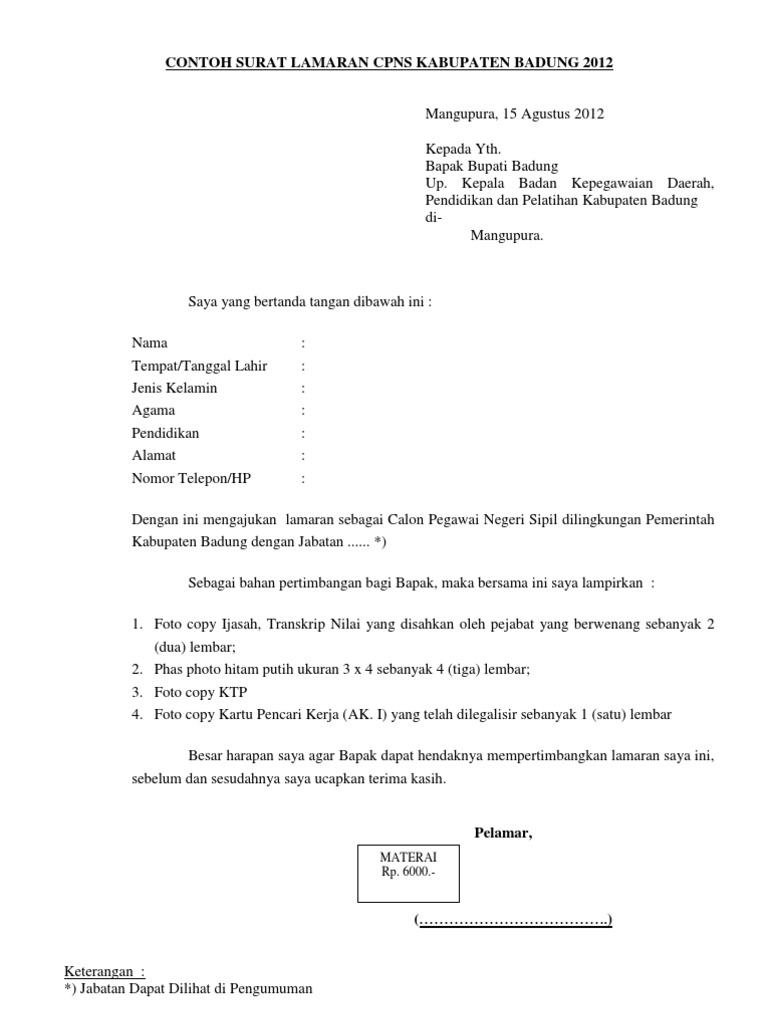 Gunakan Format contoh Surat Lamaran dan… - Bkpsdm Cirebon.Kab | Facebook