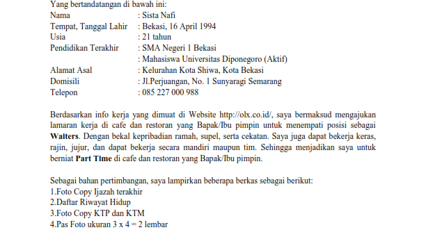 contoh surat lamaran kerja part time mahasiswa - Gawe CV