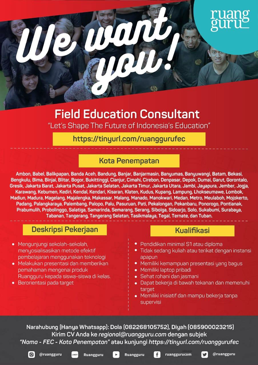 Lowongan Kerja Regional Education Consultant Ruang Guru - Lowongan Kerja Kalimantan Tengah