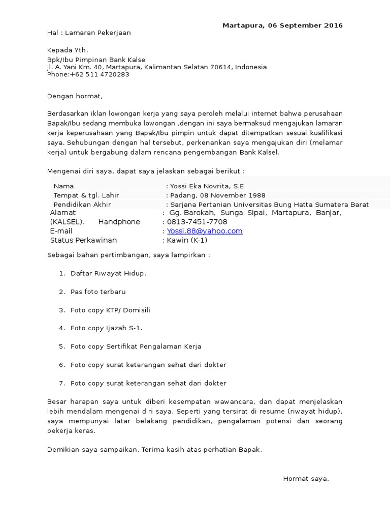 Surat Lamaran Kerja Bank Bni - Guru Ilmu Sosial