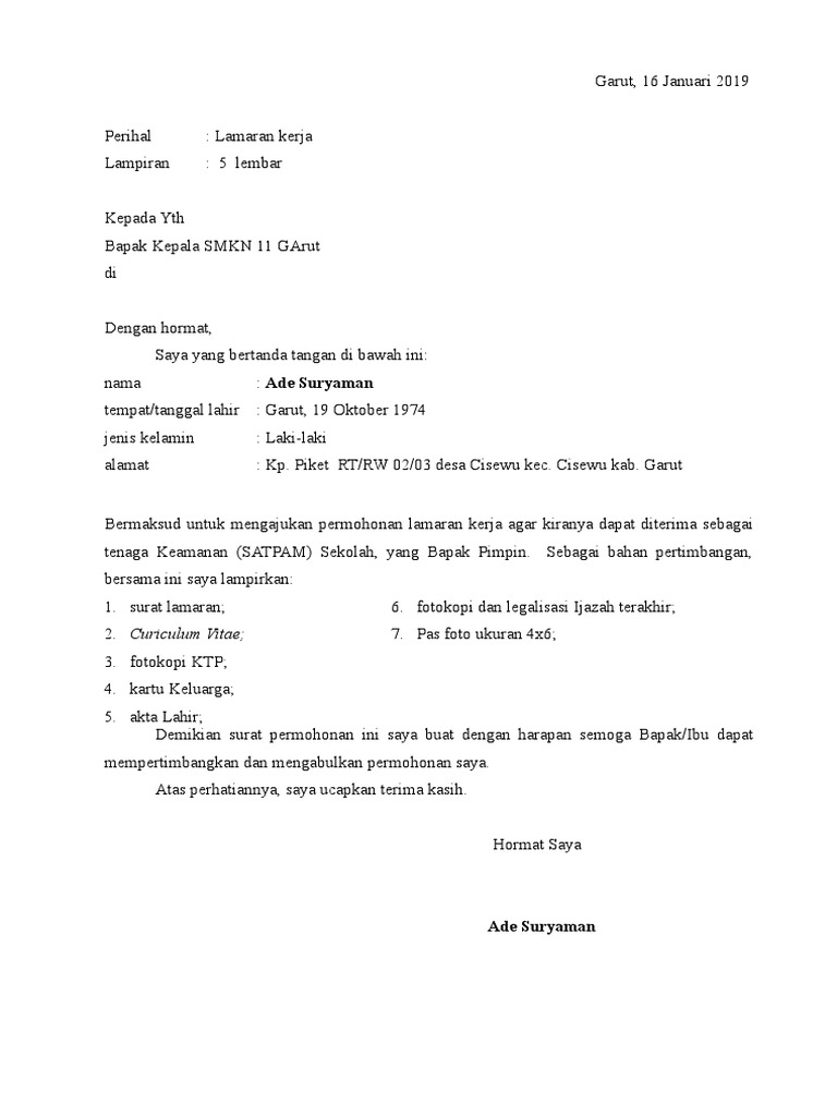 Contoh Surat Lamaran Kerja Satpam Yang Baik Dan Benar - Bagikan Contoh