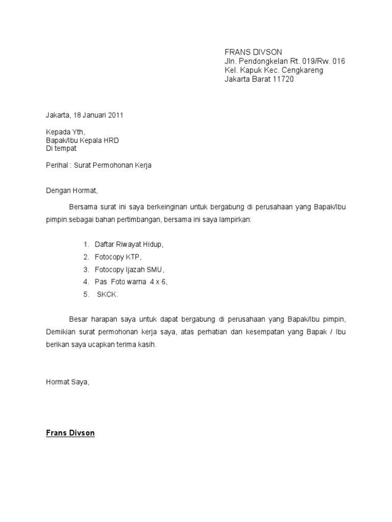 Wow #23 Kumpulan Contoh Surat Lamaran Kerja yang Benar Paling Lengkap Tinggal Pilih ! - Cikinet.com