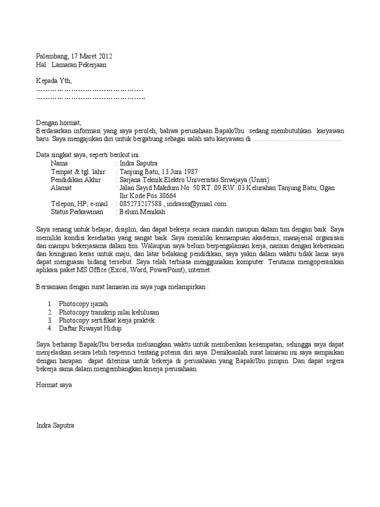 DOC) Contoh surat lamaran kerja | Iki Dans - Academia.edu
