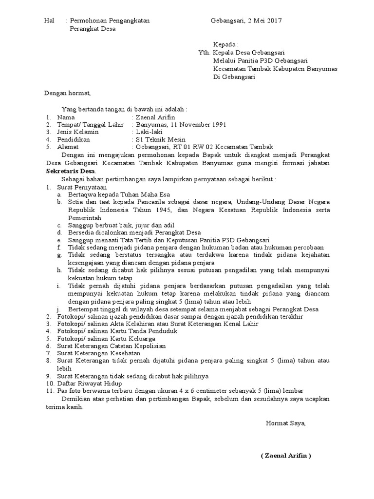 Surat Permohonan Menjadi Perangkat Desa .Doc | guru profesional