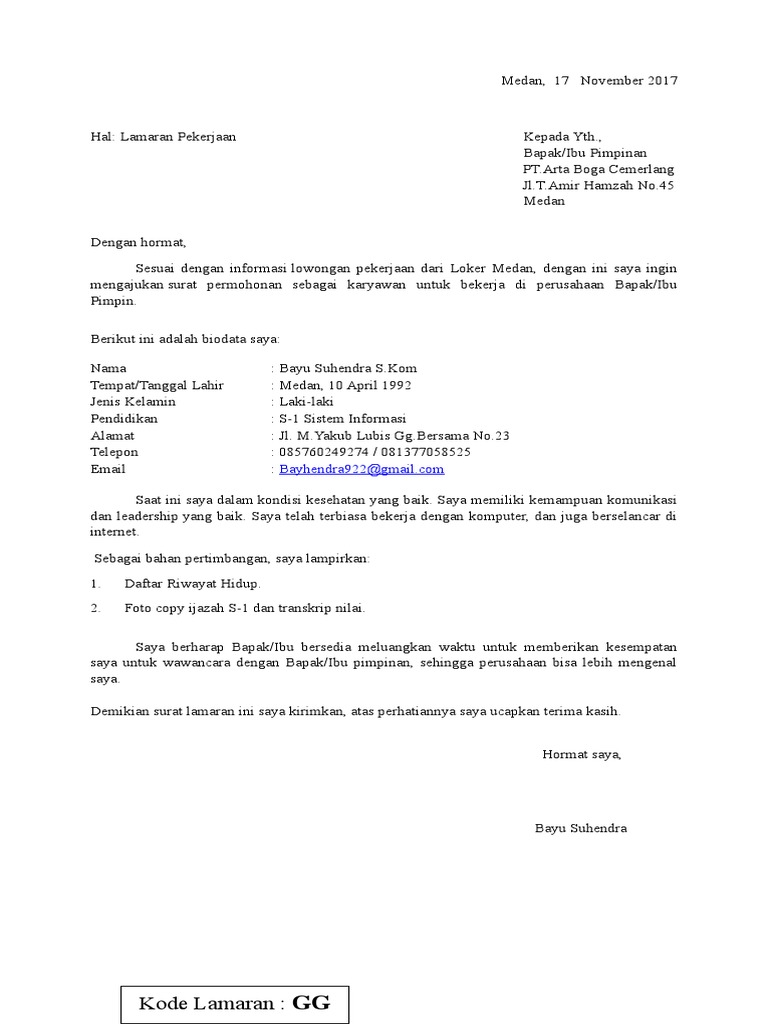 DOC) Contoh Surat Lamaran Kerja Yang Baik & Benar | puji lestari - Academia.edu
