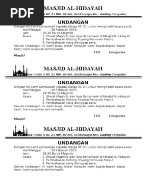 Contoh Surat Undangan Gotong Royong Masjid - Kumpulan Surat Penting