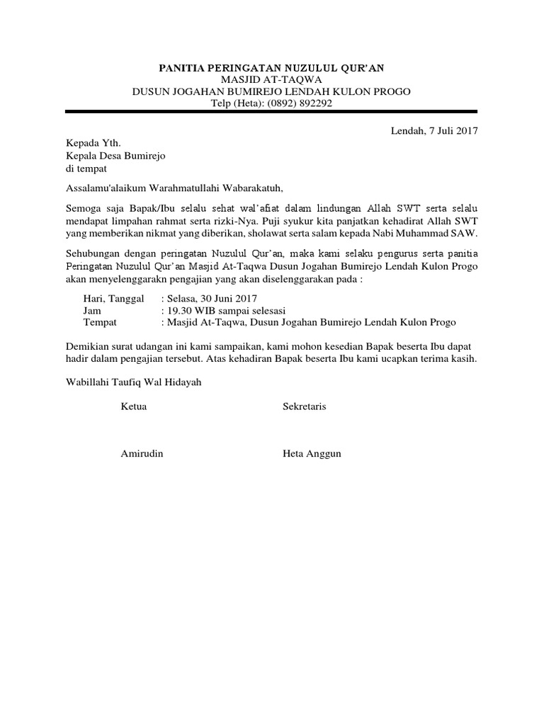 DOC) Contoh Surat Undangan Pengajian | Febriana Rhdynsyh - Academia.edu