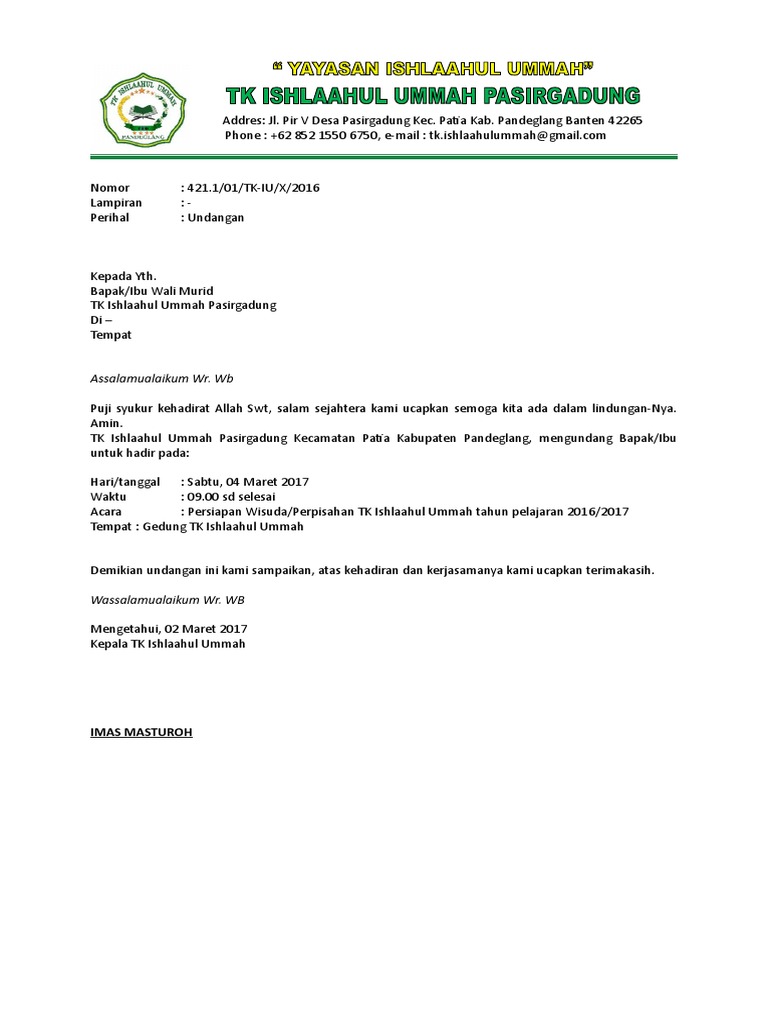 Contoh Surat Undangan Wali Murid Tk – Backup Gambar