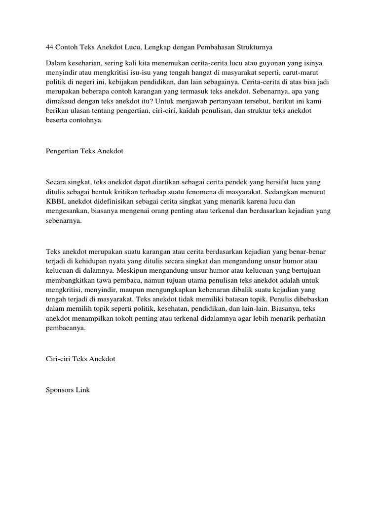 Contoh Teks Anekdot Penjelasan Struktur Analisis Lengkap – SarungPreneur