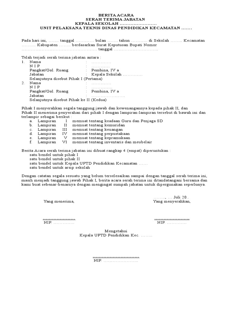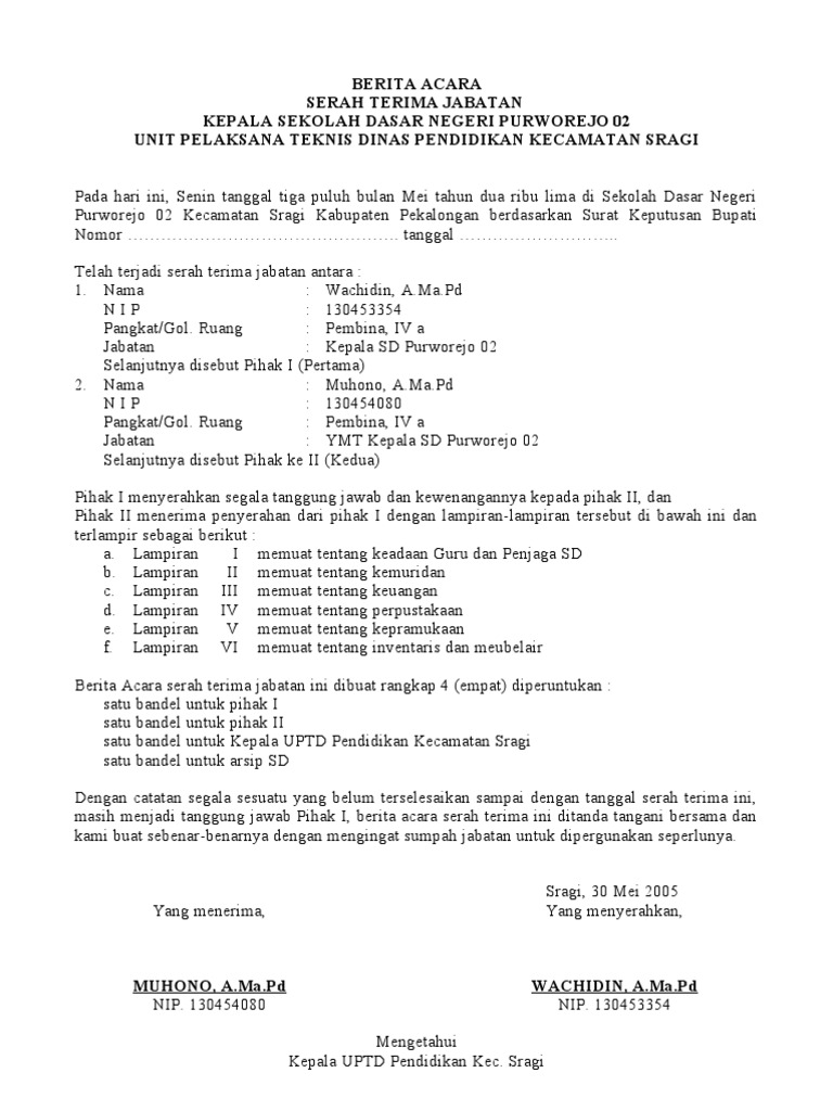 Contoh Berita Acara Serah Terima Jabatan Kepala Sekolah Baru.www.Windowbrain