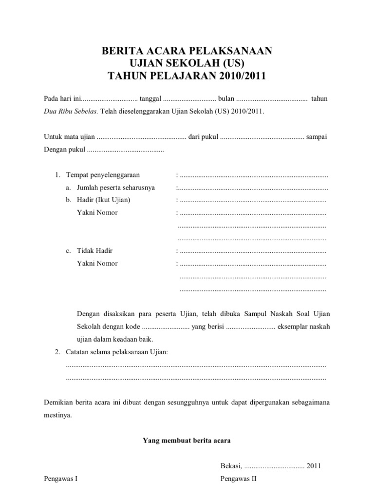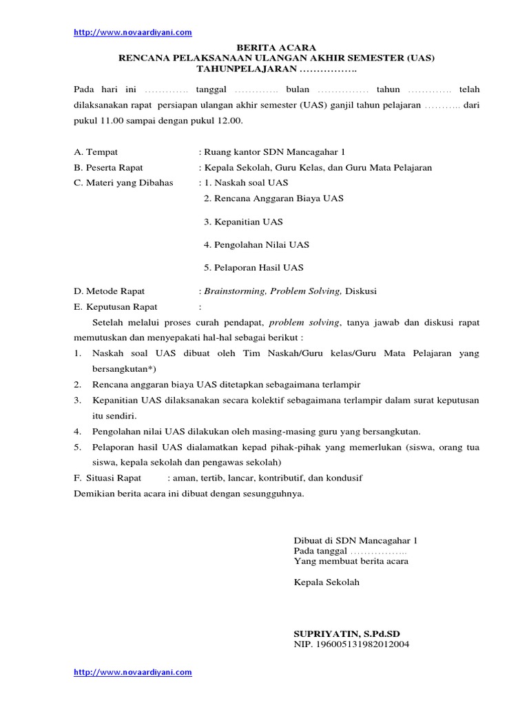 Pin di Contoh Berita Acara Pelaksanaan Ulangan Akhir Semester (UAS) di SD