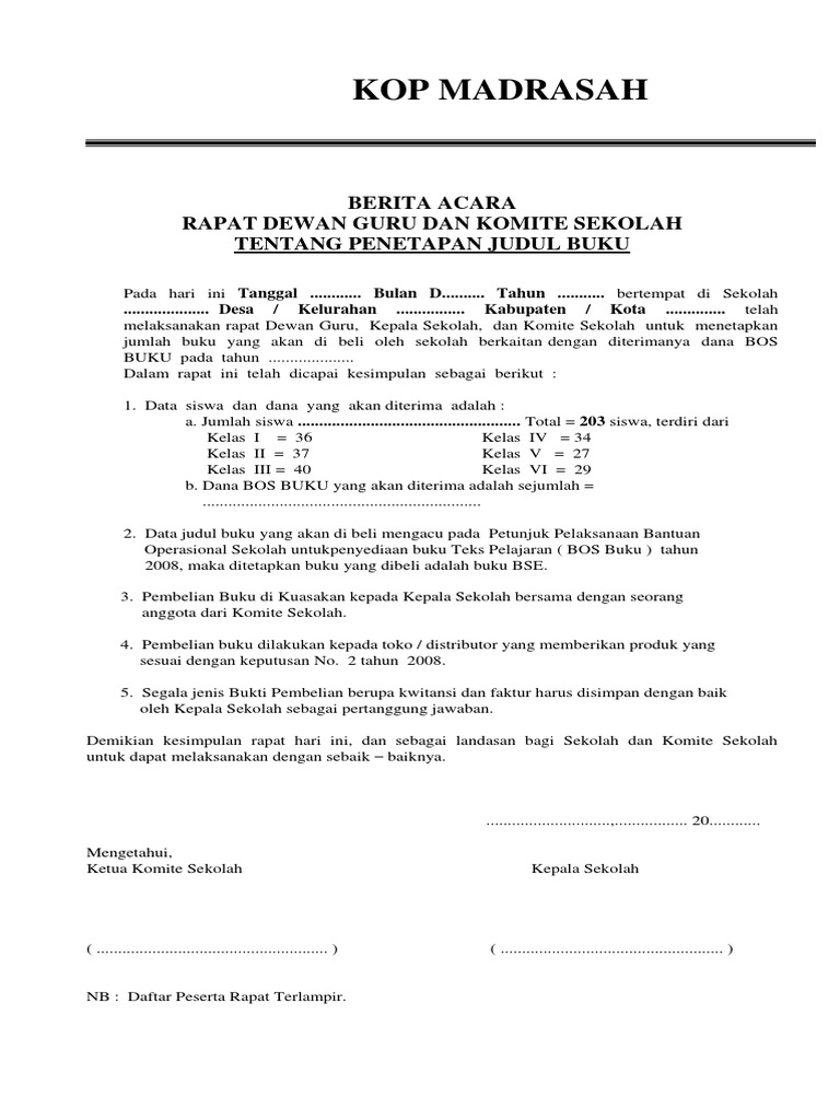 DOC) Contoh BA Komite Sekolah | Asih Pujiariani - Academia.edu