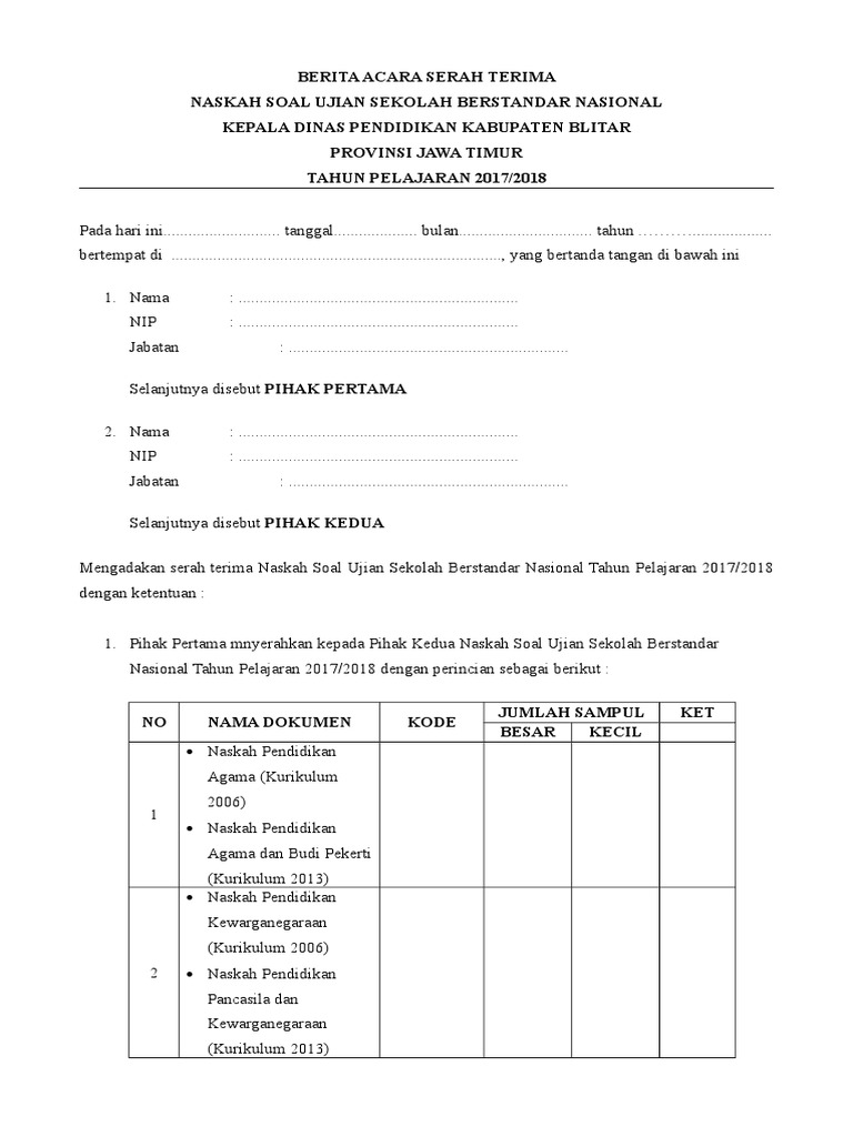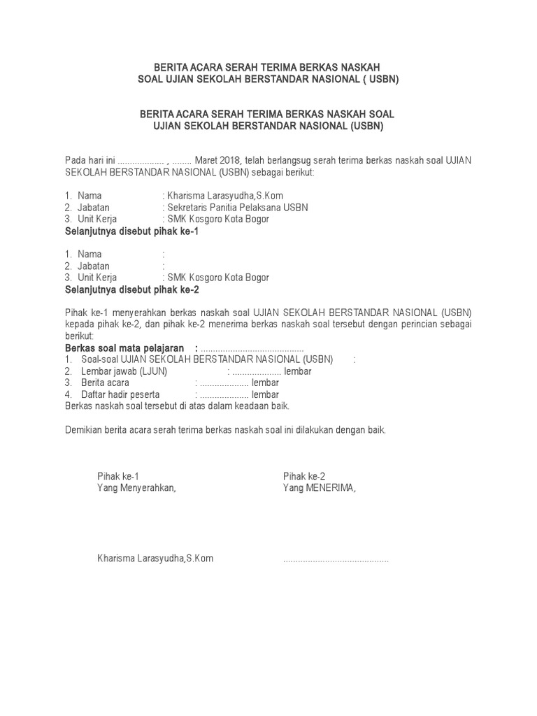 Berita Acara Serah Terima Naskah Soal Usbn