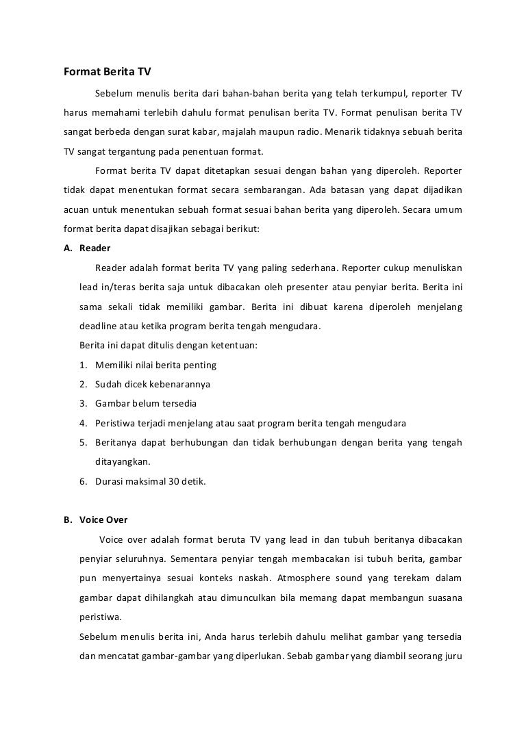 DOC) Contoh Naskah Berita Televisi nona ayy | Melvy Christian - Academia.edu