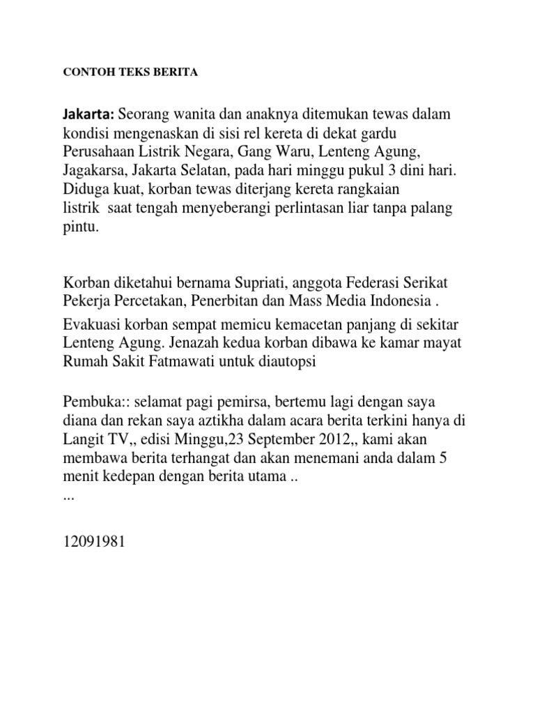 Contoh Teks Berita Singkat - Contoh Resource