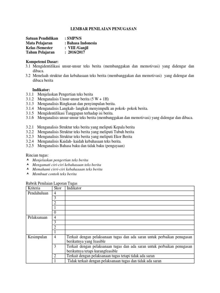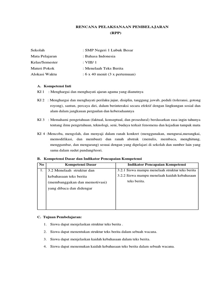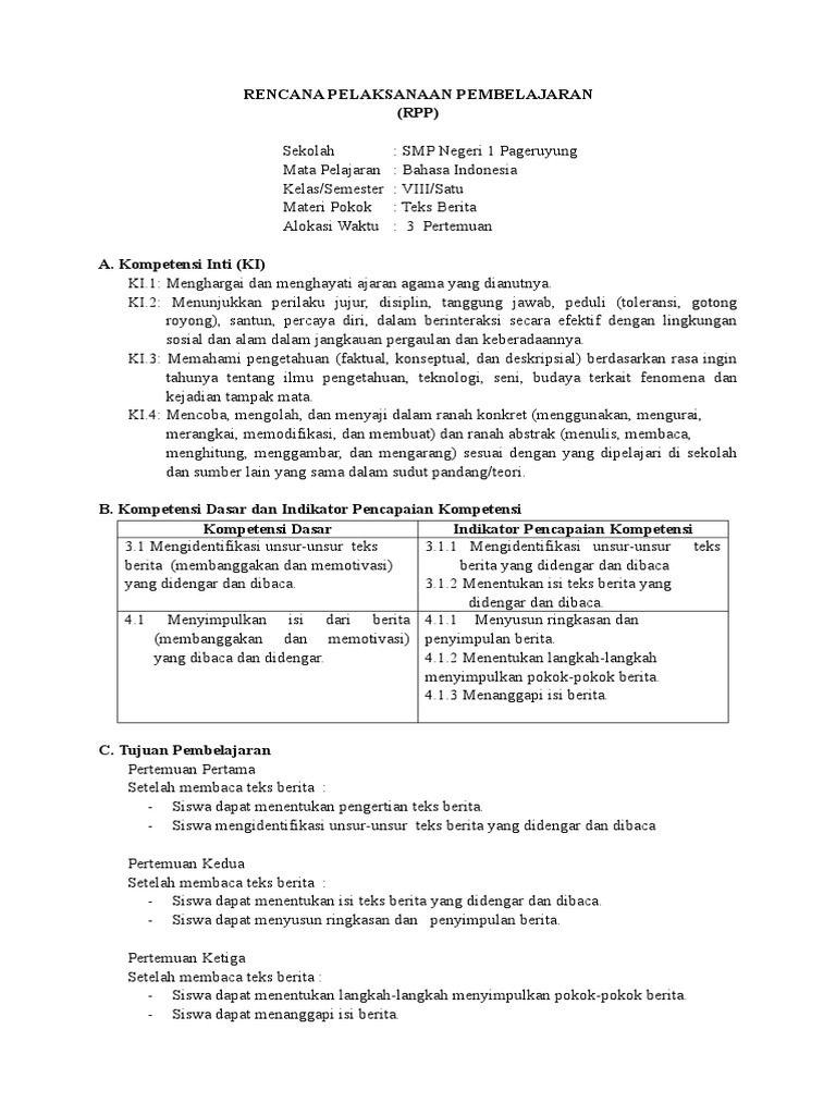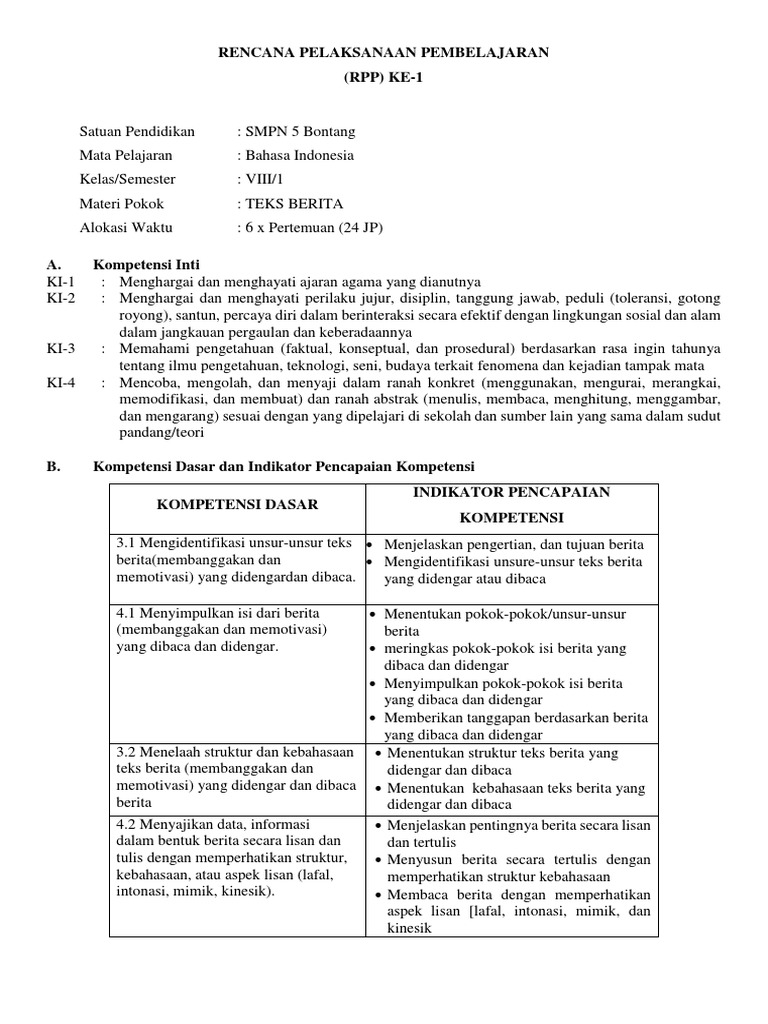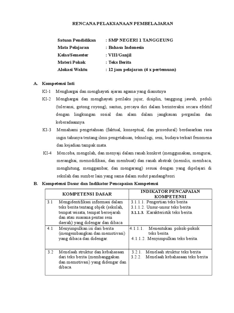 DOC) RPP TEKS BERITA KELAS VIII SEMESTER 1 KD 3 | Vheerman Kabalmay - Academia.edu