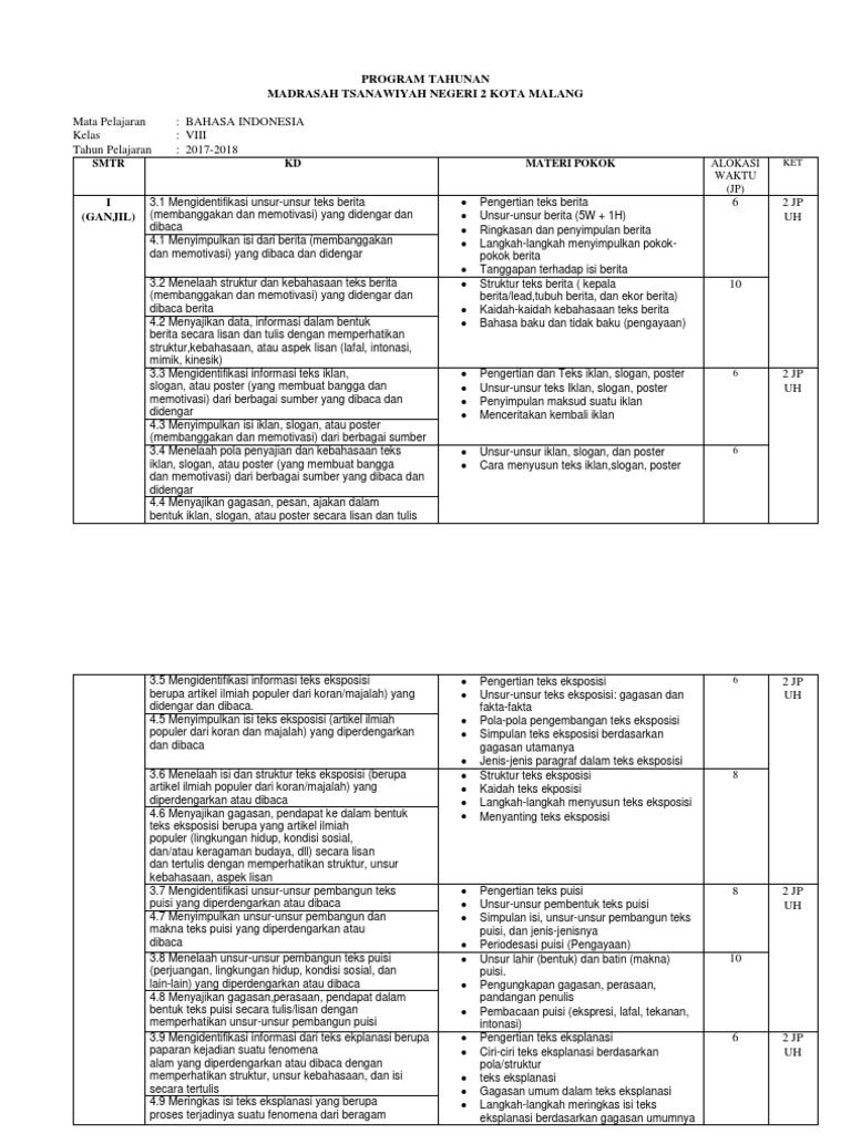 Program Tahunan dan Prosem Semester 1 (Ganjil) Kelas 8 Kurikulum 2013 | PELAJARAN BAHASA INDONESIA DI JARI KAMU