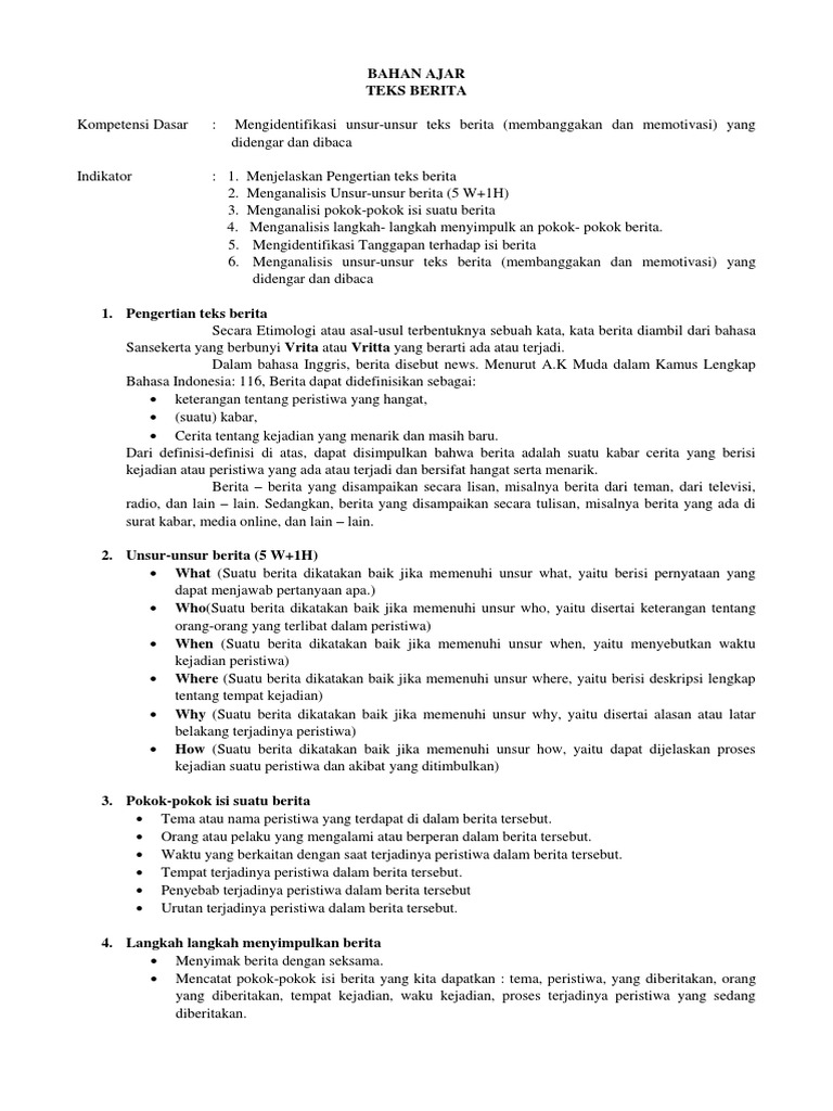 DOC) Bahan Ajar Teks Berita | Anita Anggraini - Academia.edu