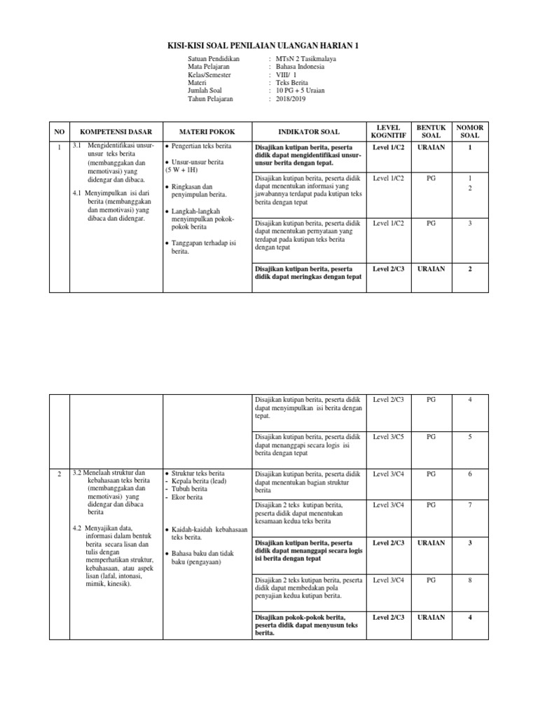 KISI_KISI B. IND PAS KLS 8 smt 1 2019-2020 - Copy edit.docx - KISI-KISI SOAL PENILAIAN AKHIR SEMESTER(PAS NO 1 KOMPETENSI DASAR 3.1 Mengidentifikasi | Course Hero
