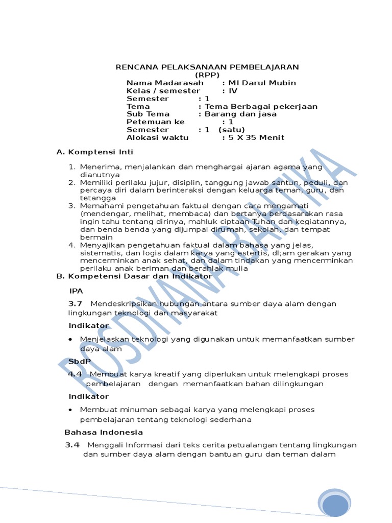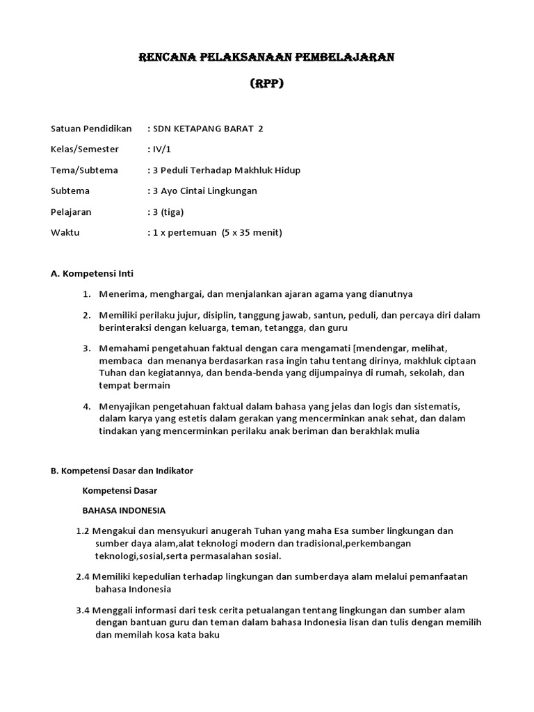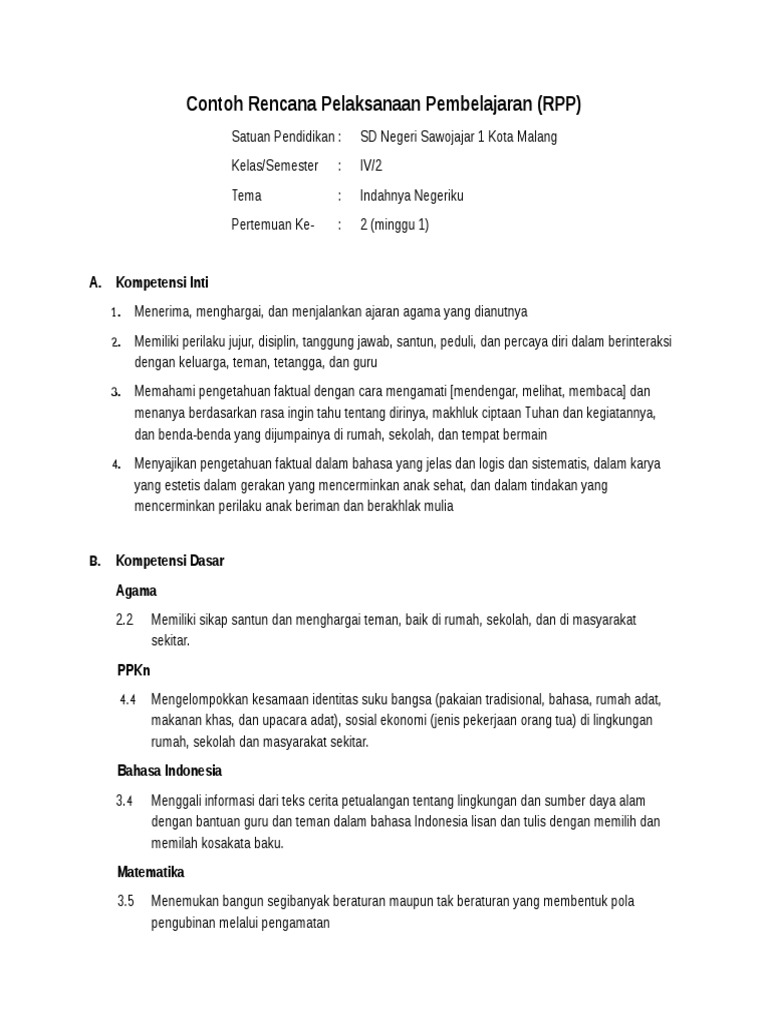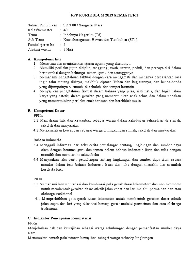 DOC) RPP Kurikulum 2013 Kelas IV | Teguh Prasetyo - Academia.edu