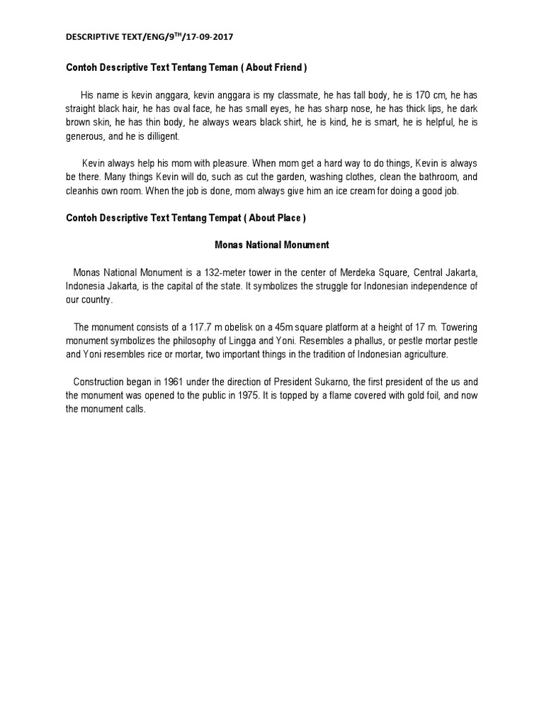 Contoh Descriptive Text Tentang Teman