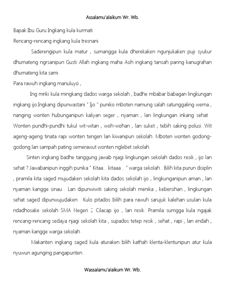 Contoh Pidato Bahasa Jawa Tentang Kebersihan Lingkungan Sekolah Singkat