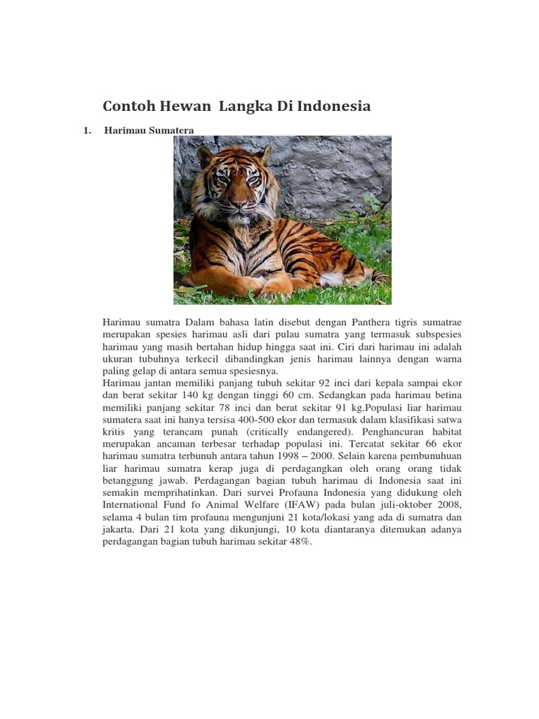 Contoh Hewan Langka Di Indonesia: 1. Harimau Sumatera