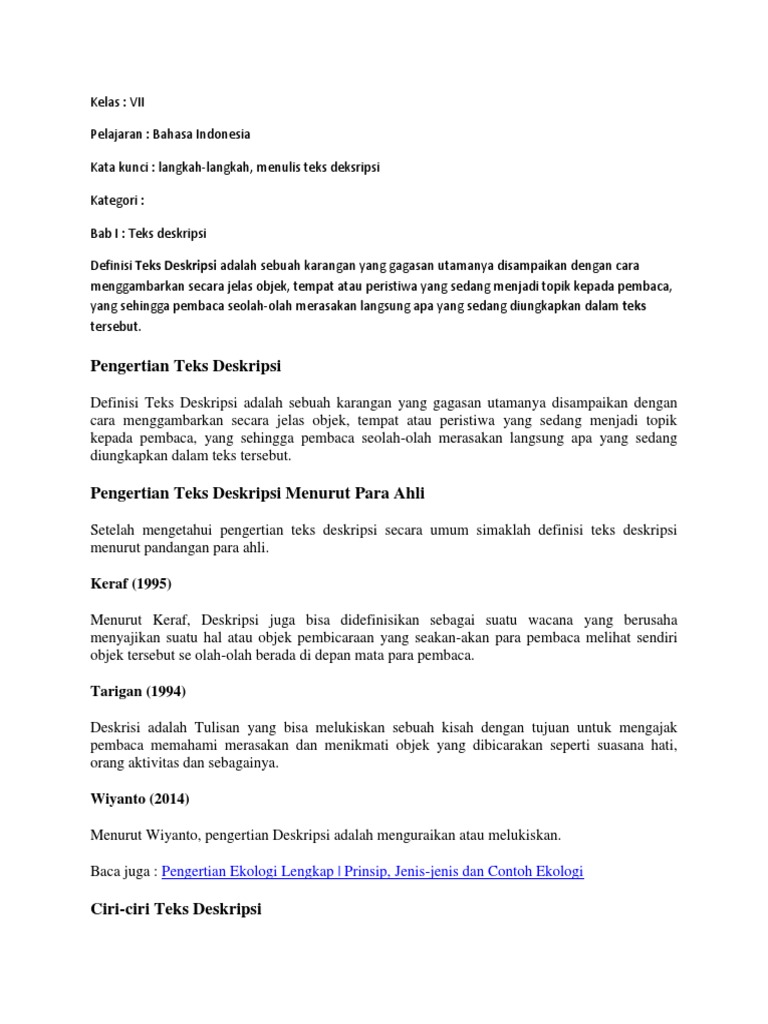 Contoh Paragraf Deskripsi Lengkap | Sarif Karanggan Aza - Academia.edu