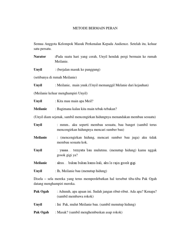 PDF) METODE PEMBELAJARAN BERMAIN PERAN DALAM MENINGKATKAN KEMAMPUAN EKSPRESIF DRAMA PADA PEMBELAJARAN BAHASA INDONESIA