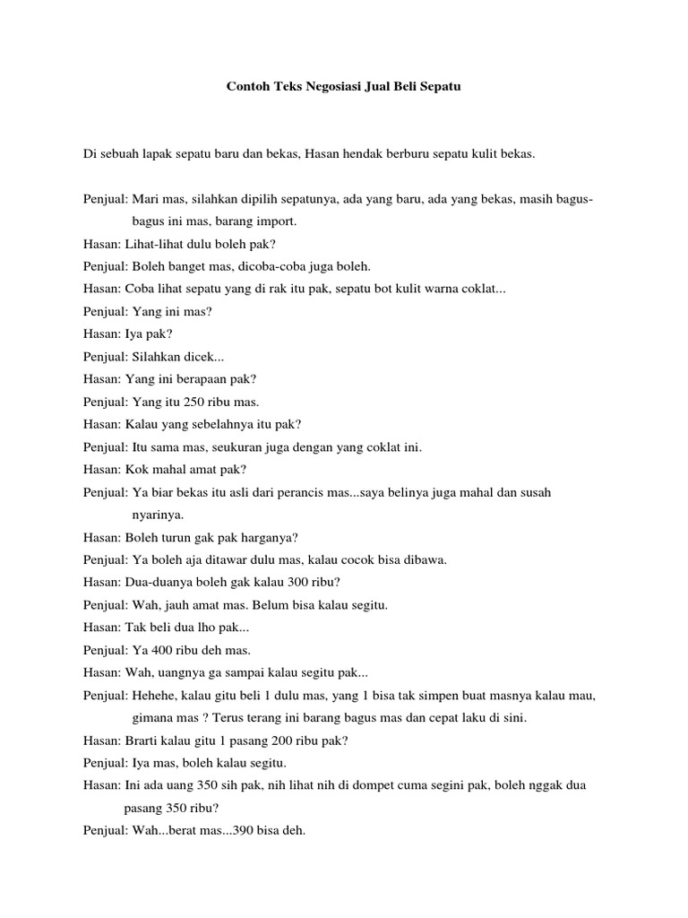 Contoh Teks Negosiasi Jual Beli 6 Orang - Berbagai Teks Penting