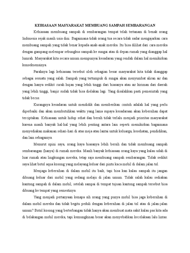 Kebiasaan Masyarakat Membuang Sampah Sembarangan