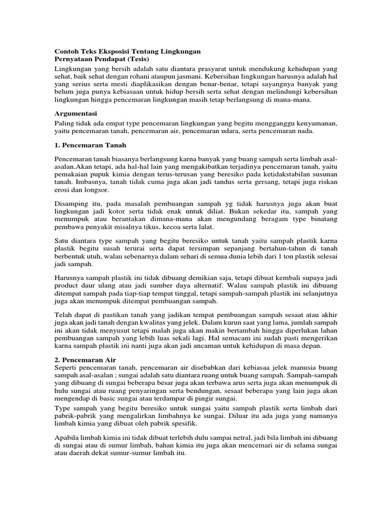 Contoh Teks Eksposisi Bahaya Sampah Plastik Bagi Lingkungan - Berbagai Teks Penting