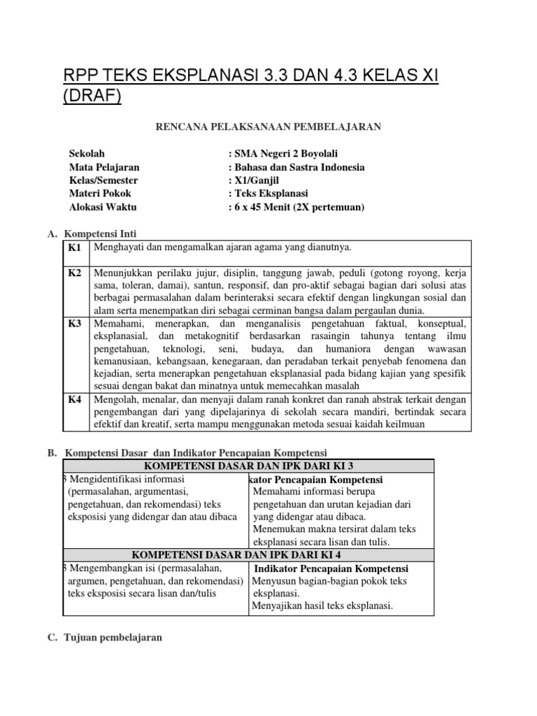 PDF) RENCANA PELAKSANAAN PEMBELAJARAN (RPP) TEKS EKSPLANASI DAN LAMPIRAN | Iga Noor Khayati - Academia.edu