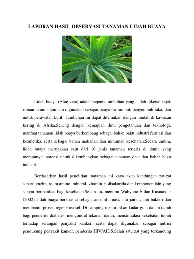 Laporan Hasil Observasi Tanaman Lidah Buaya