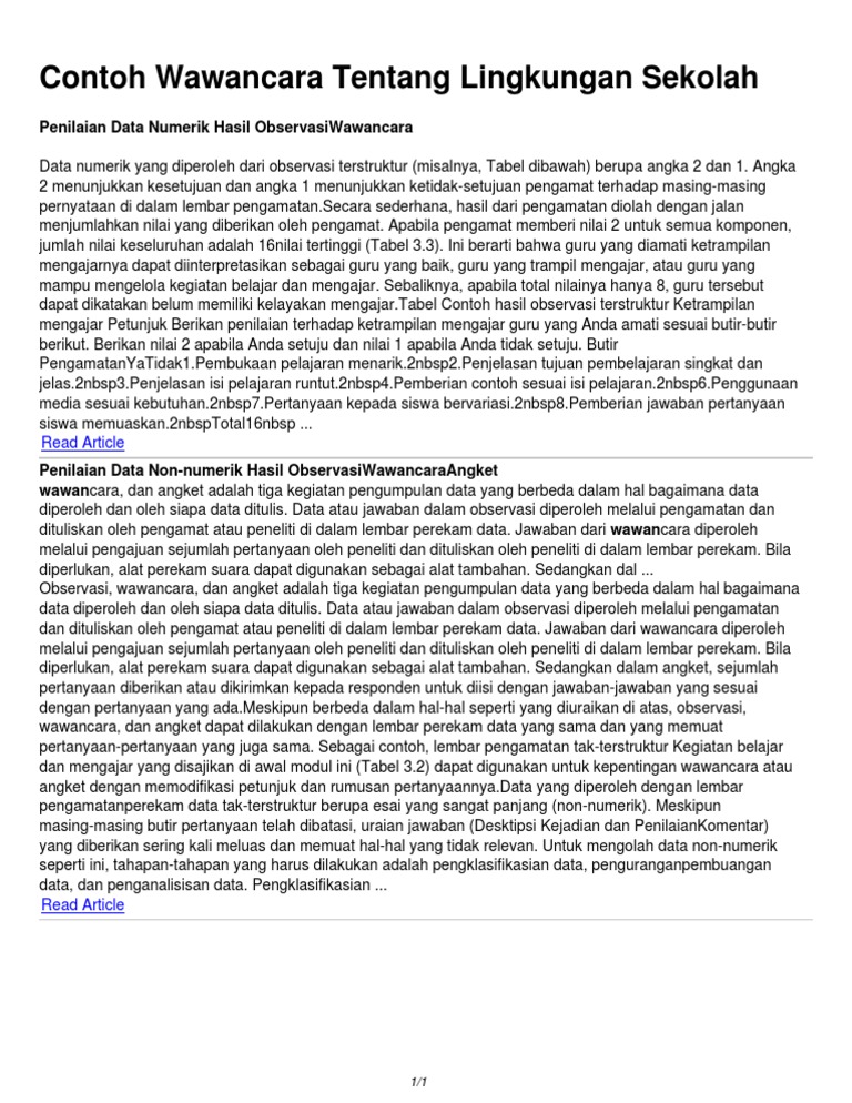 Contoh Teks Hasil Observasi Wawancara