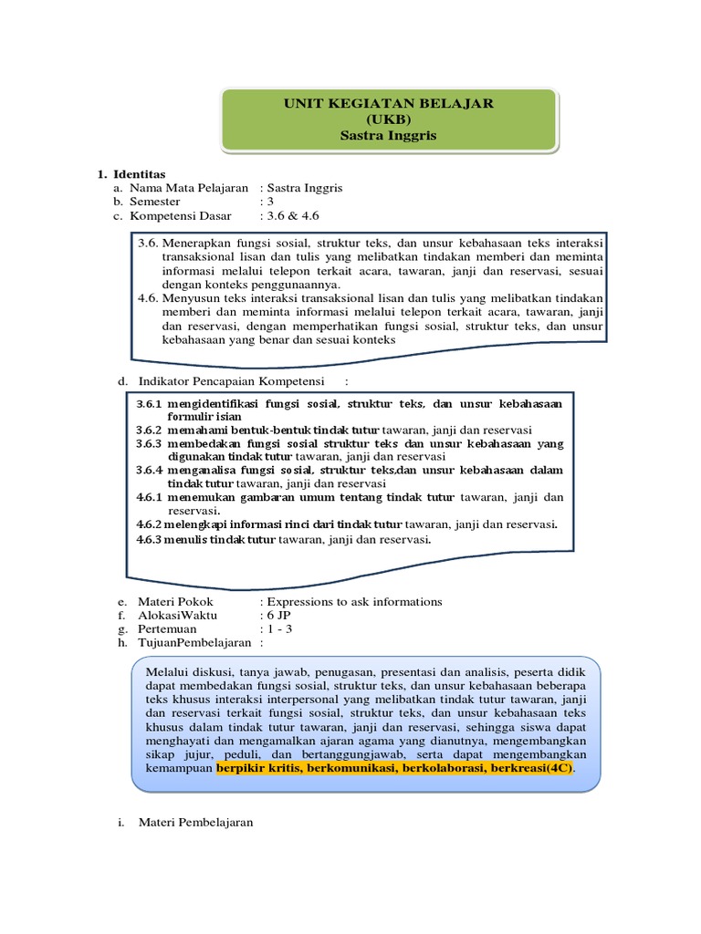 UKBM Sastra Inggris XI KD 3.6 - 4.6 Expression to Ask Information