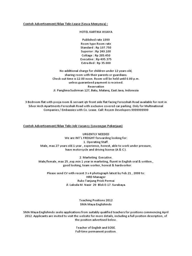 11+ Contoh advertisement dalam Bahasa Inggris Beserta Arti dan Gambarnya - Bukubiruku