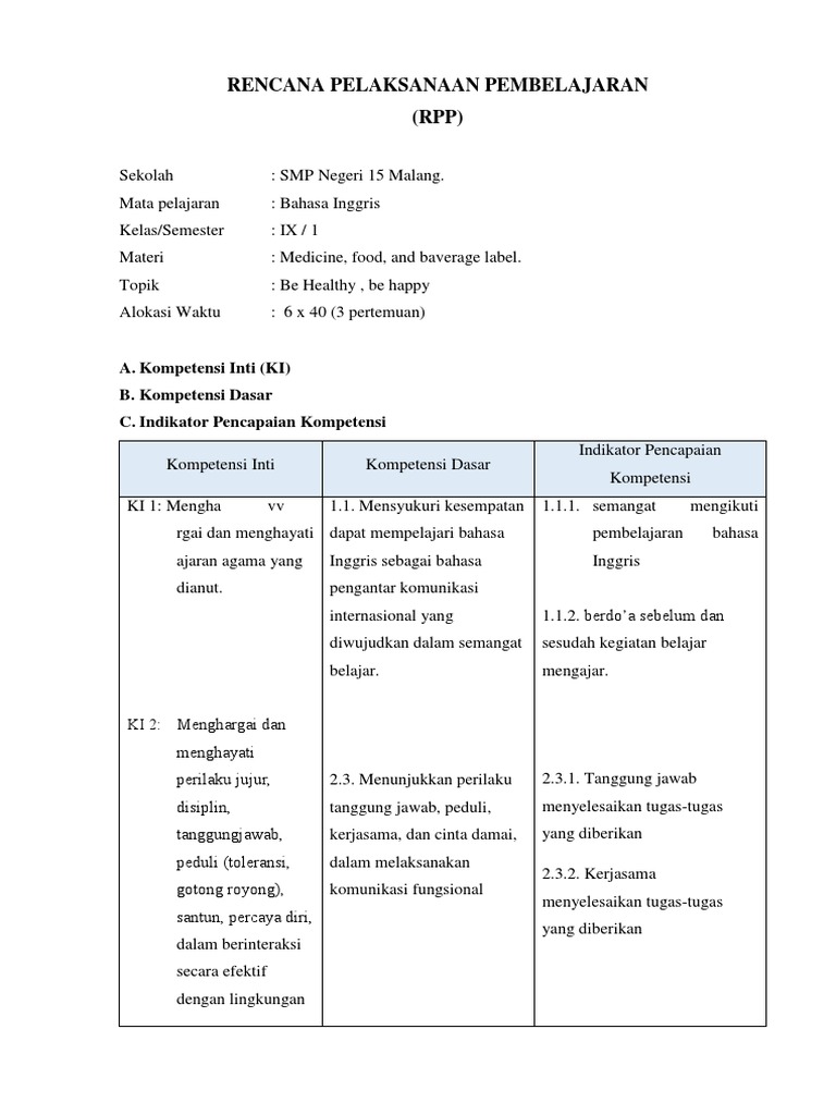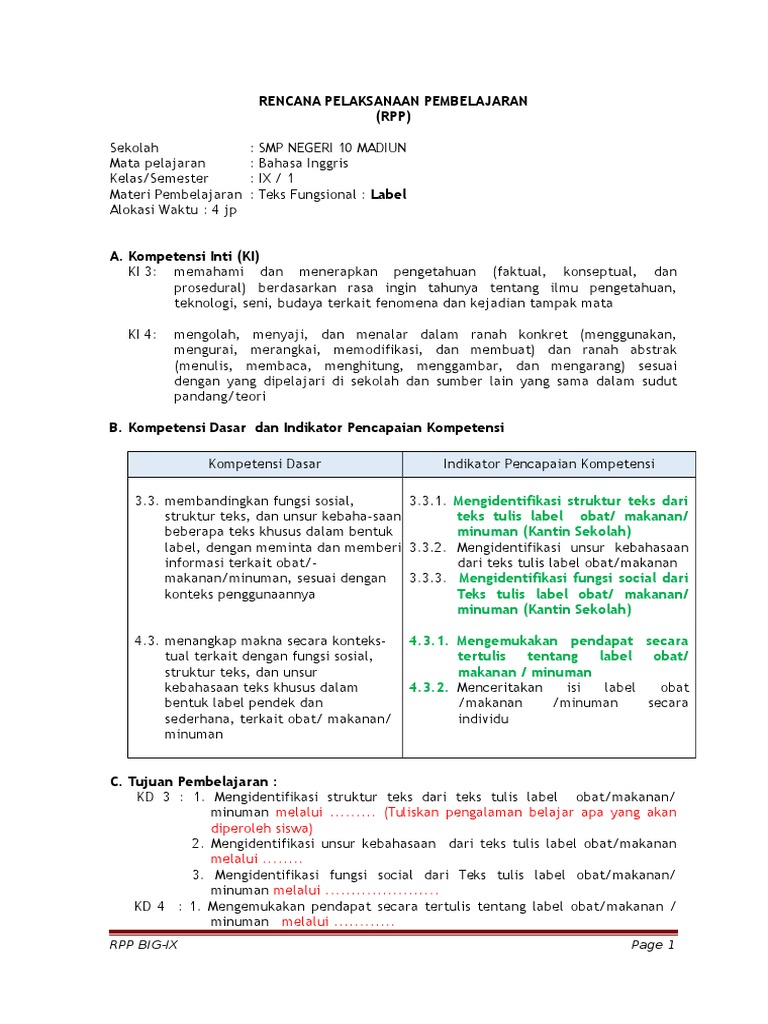 Rpp Kelas Ix Label