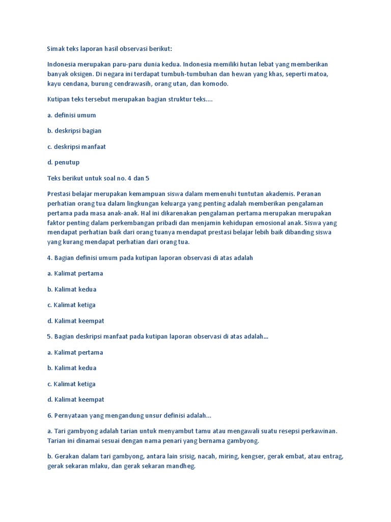 Soal hots Teks Laporan Hasil Observasi Beserta Kunci Jawaban - Info Pendidikan Terbaru