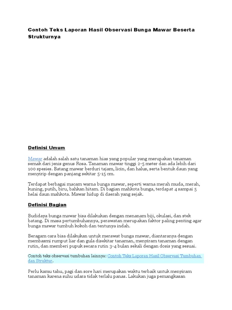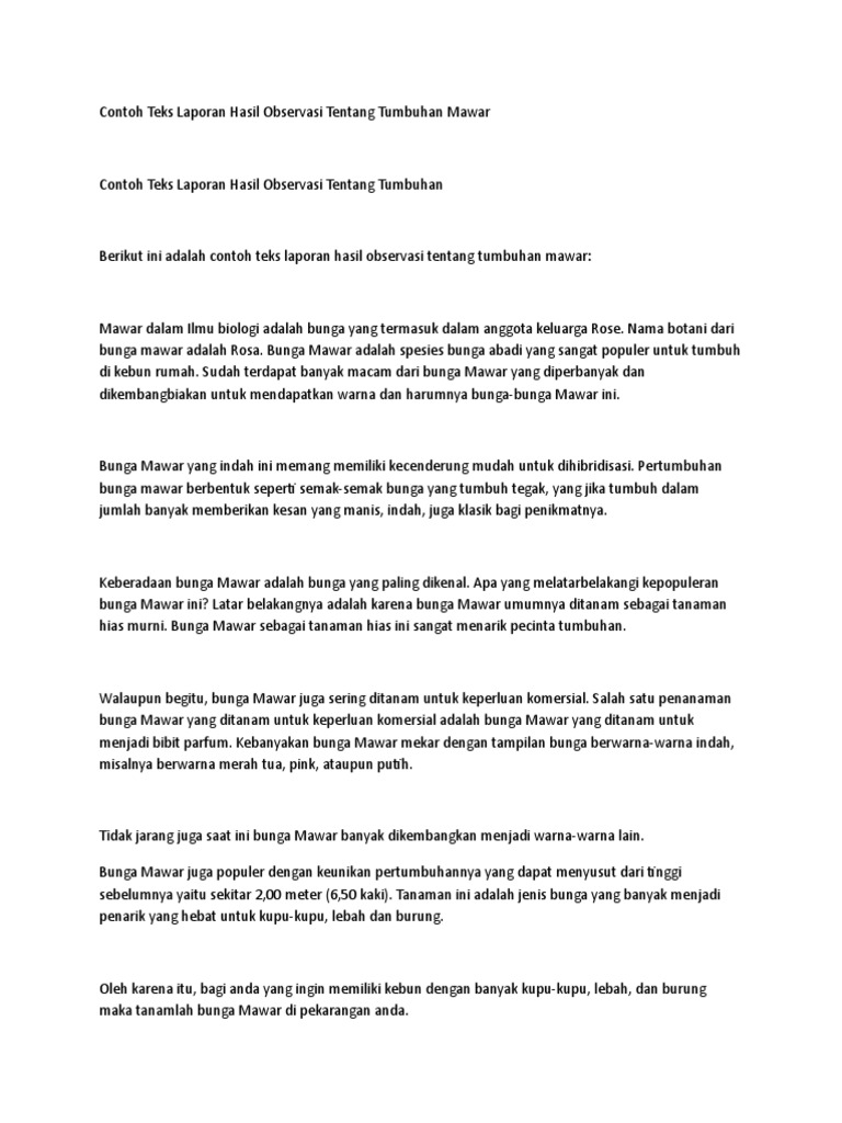 Contoh Teks Laporan Hasil Observasi Tentang Bunga Mawar - Dapatkan Contoh