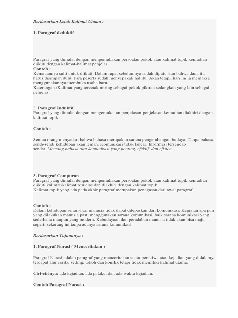 DOC) KUMPULAN CONTOH PARAGRAF DEDUKTIF, INDUKTIF DAN CAMPURAN | Sahrul Parawie - Academia.edu