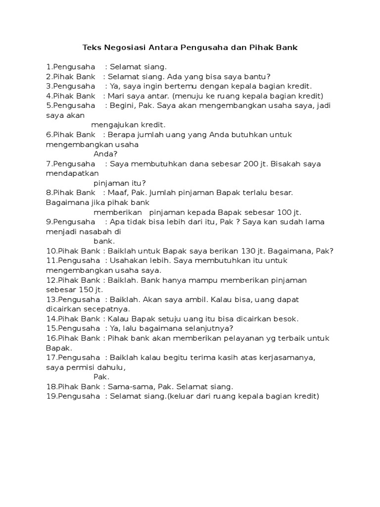 Contoh Teks Negosiasi Antara Pengusaha Dan Pihak Bank