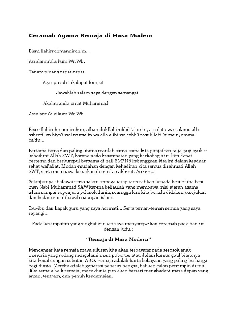 DOC) Pidato Kenakalan Remaja | Wira Praja - Academia.edu