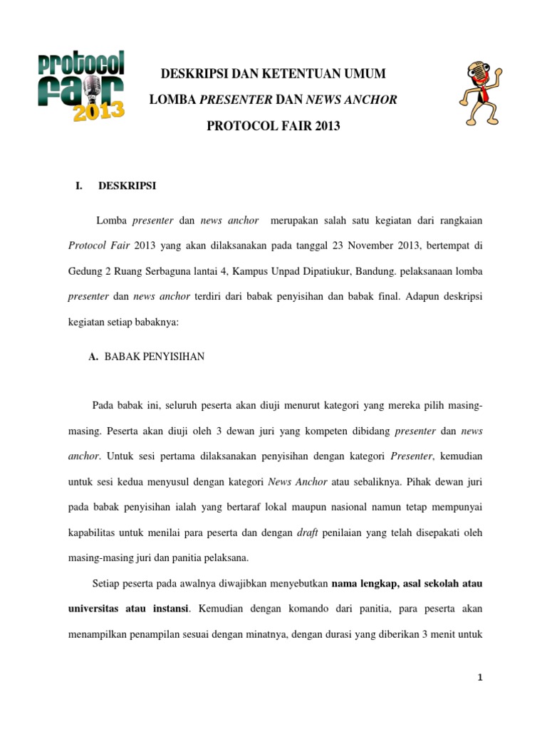 Deskripsi Dan Persyaratan Lomba Presenter Dan News Anchor Protocol Fair 2013