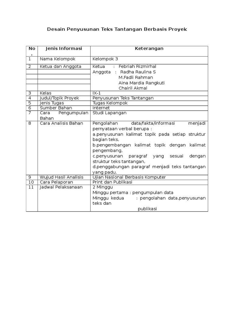 Desain Penyusunan Teks Tantangan Berbasis Proyek
